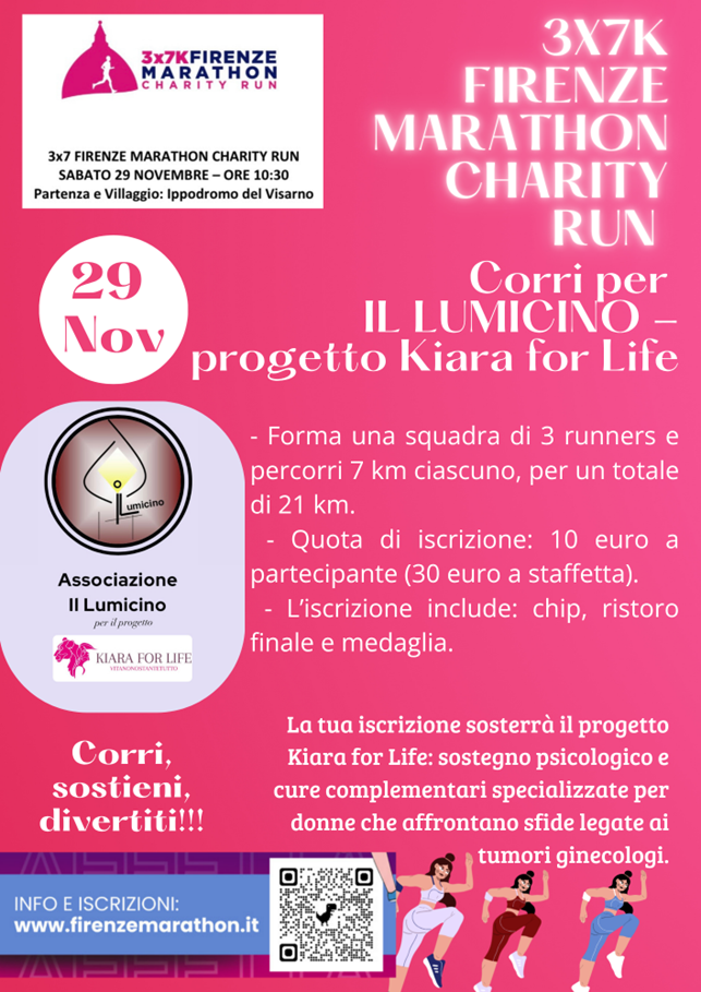 Unisciti a noi per un evento speciale legato al nostro programma charity ufficiale, scegli di correre per l’Associazione Il Lumicino, sosterrai il progetto Kiara for life per donne con tumori ginecologici.